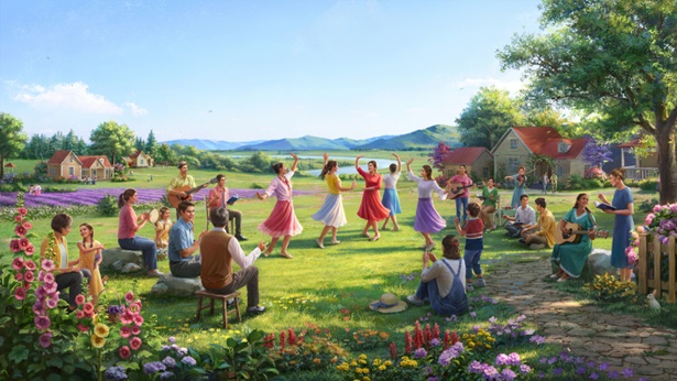 En el reino, la vida del pueblo de Dios, con Dios, es incomparablemente feliz. Las aguas bailan por las vidas benditas de los pueblos, las montañas disfrutan Mi abundancia con los pueblos. Todos los hombres se esfuerzan, trabajan duro, muestran su lealtad a Mi reino. En el reino, ya no hay rebelión, no más resistencia; los cielos y la tierra dependen el uno del otro, el hombre y Yo somos cercanos y sentimos profundamente, a través de las felicidades de la vida, que nos confundimos en uno.… En este momento, comienzo formalmente la vida celestial. Ya no existe la interferencia de Satanás y los pueblos entran en reposo. En todo el universo, Mi pueblo escogido vive en Mi gloria, bendecido más allá de toda comparación, no como personas que viven entre personas, sino como personas que viven con Dios.